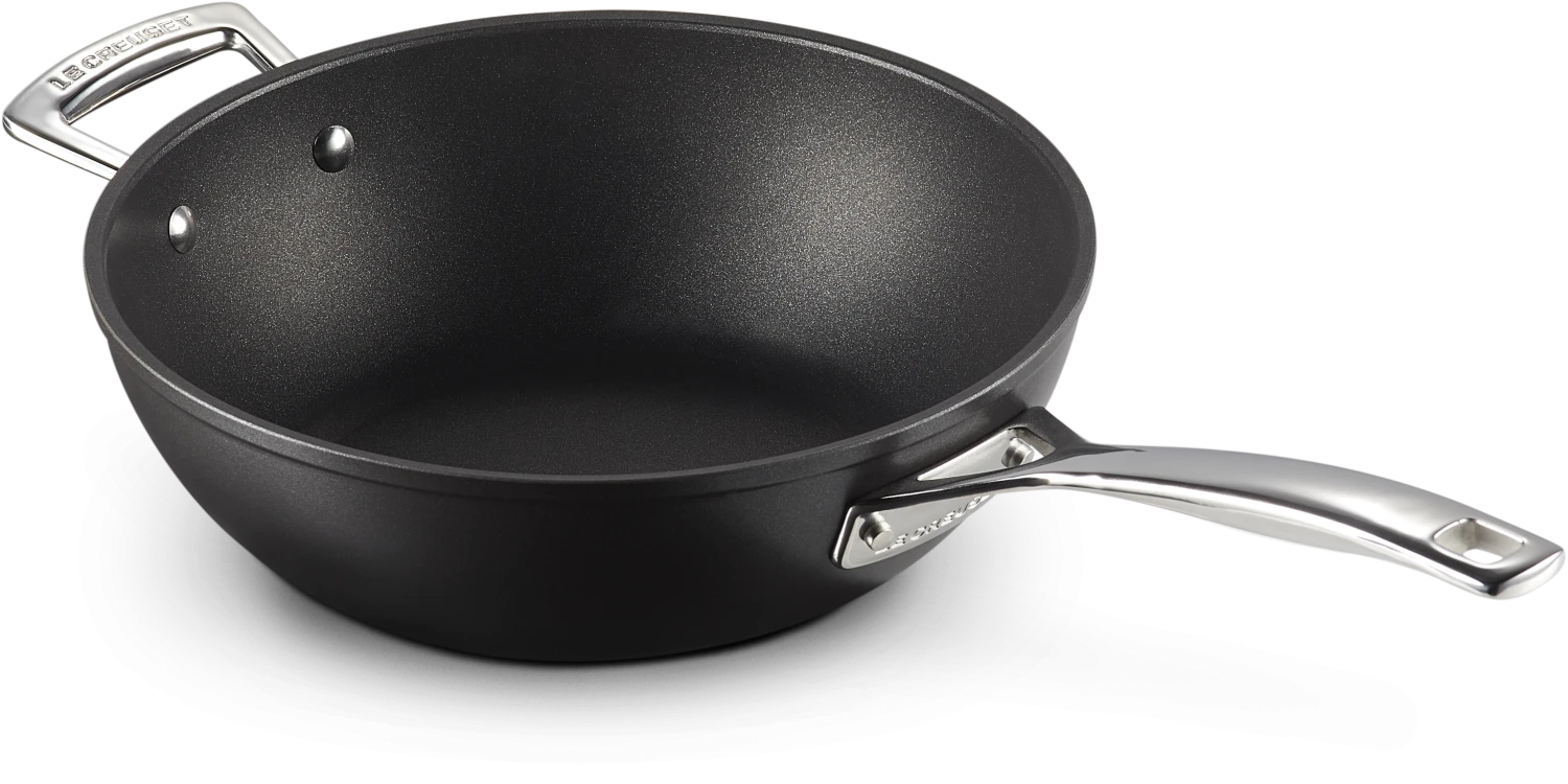 Le Creuset bietet mit dieser neuwertigen Aluminium-Antihaft-Pfannen-Serie ein vielfältiges Sortiment, aus dem jeder – vom Hobbykoch bis zum Kochamateur- die passende Pfanne findet. Der eloxierte und beschichtete Aluminium-Pfannenkörper gepaart mit einem ansprechenden Design ergeben eine ideale Kombination für das tägliche Kochen.