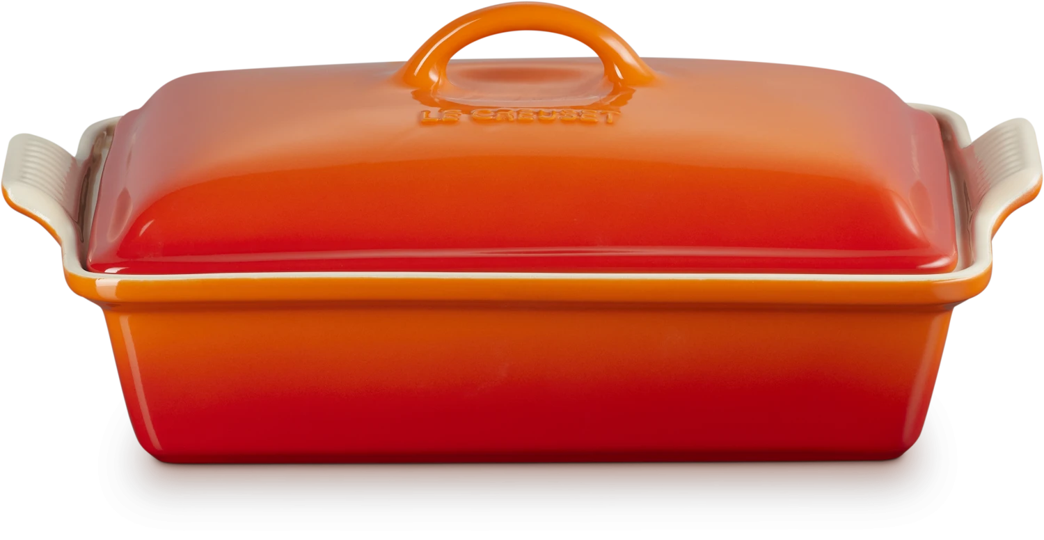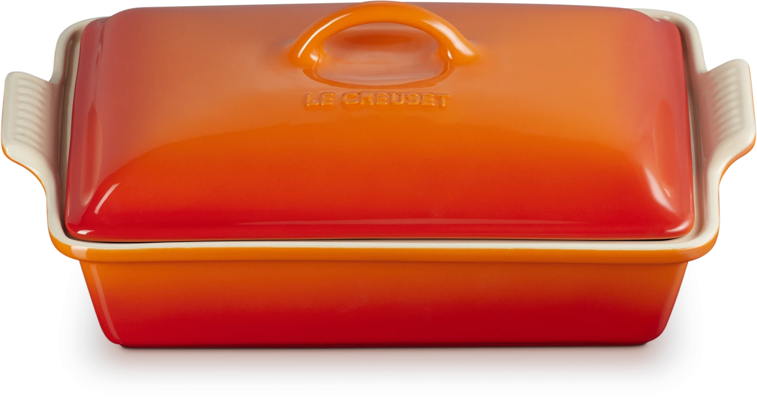 Auflaufform Tradition mit Deckel, rechteckig in ofenrot. Praktische 33 cm große Auflaufform mit Deckel, um Feuchtigkeit und Geschmack während des Backens einzuschließen.