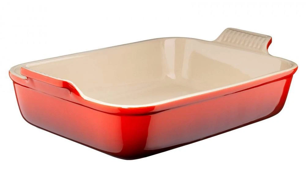 Eigenschaften der Le Creuset Auflaufform Tradition, rechteckig in kirschrot: