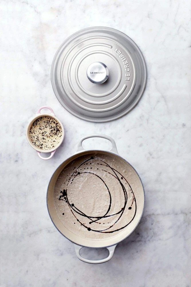 Eigenschaften des Le Creuset Bräters Signature rund in perlgrau: