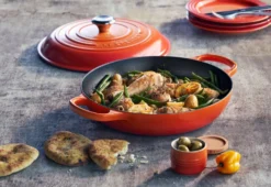 Le Creuset Pfannen aus Gusseisen zeichnen sich durch eine gleichmäßige Wärmeverteilung und eine hervorragende Wärmespeicherung aus. Einmal erhitzt, bleiben Le Creuset Gusseisenpfannen lange heiß. Das Bratgut kann selbst bei schwacher Hitze mit niedrigem Energieverbrauch in der Le Creuset Gusspfanne gebraten werden. Le Creuset Pfannen aus Gusseisen sind ideal zum scharfen Anbraten von Fleisch oder Gemüse. Kurzgebratenes erhält außen die richtige Bräune und bleibt innen saftig. Kein anderes Material brät so kross!