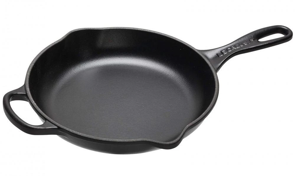 Le Creuset Brat- und Servierpfanne Signature aus Gusseisen in schwarz. Die Le Creuset Brat- und Servierpfanne eignet sich für scharfes Anbraten oder zum Überbacken von Gemüsegerichten im Ofen. Da die ergonomischen Griffe aus Gusseisen gefertigt sind, kann die Pfanne problemlos im Backofen zum Einsatz kommen. Beidseitige Ausgüsse helfen überschüssige Flüssigkeiten oder Saucen platziert um- bzw. auszuschütten.