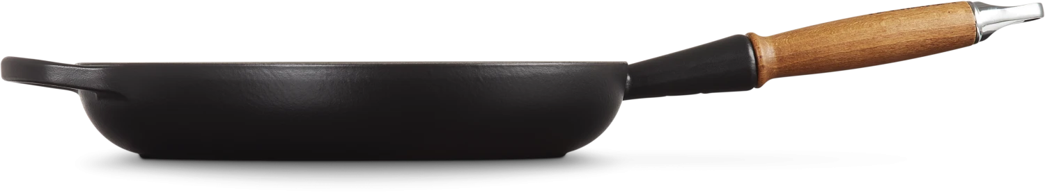 Die spezielle Le Creuset Innenemaillierung der Gusspfanne ist aus schwarzem Emaille. Diese sorgt dafür, dass man beim Braten nur wenig Fett benötigt, scharfes Anbraten auch ohne Ankleben gelingt und die Reinigung der Gusspfanne erleichtert wird. Ein praktischer Zweitgriff erleichtert die Handhabung bei allen Gusspfannen.