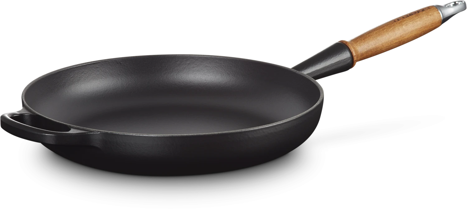 Le Creuset Pfannen aus Gusseisen zeichnen sich durch eine gleichmäßige Wärmeverteilung und eine hervorragende Wärmespeicherung aus. Einmal erhitzt, bleiben