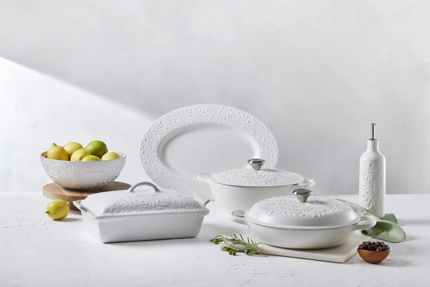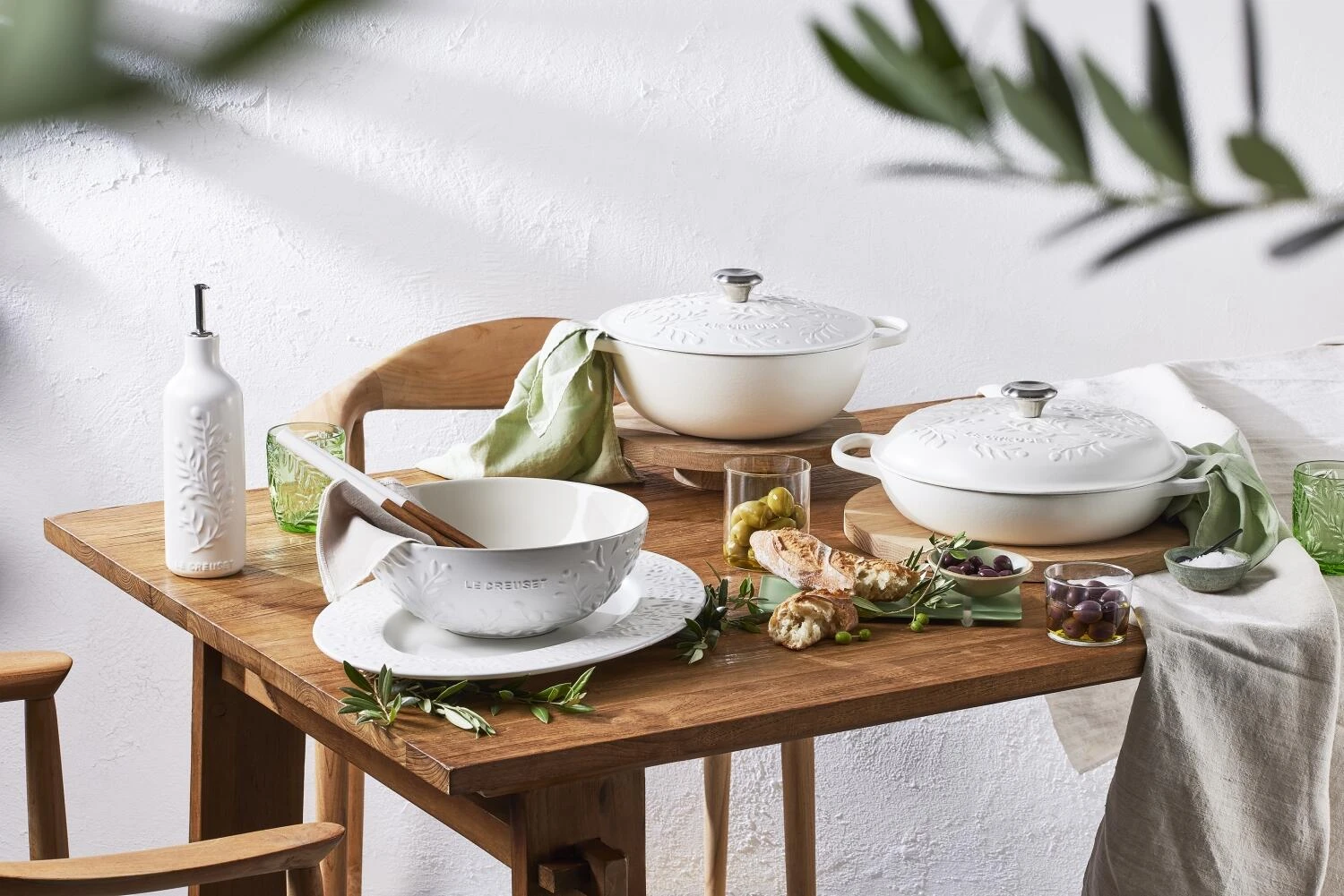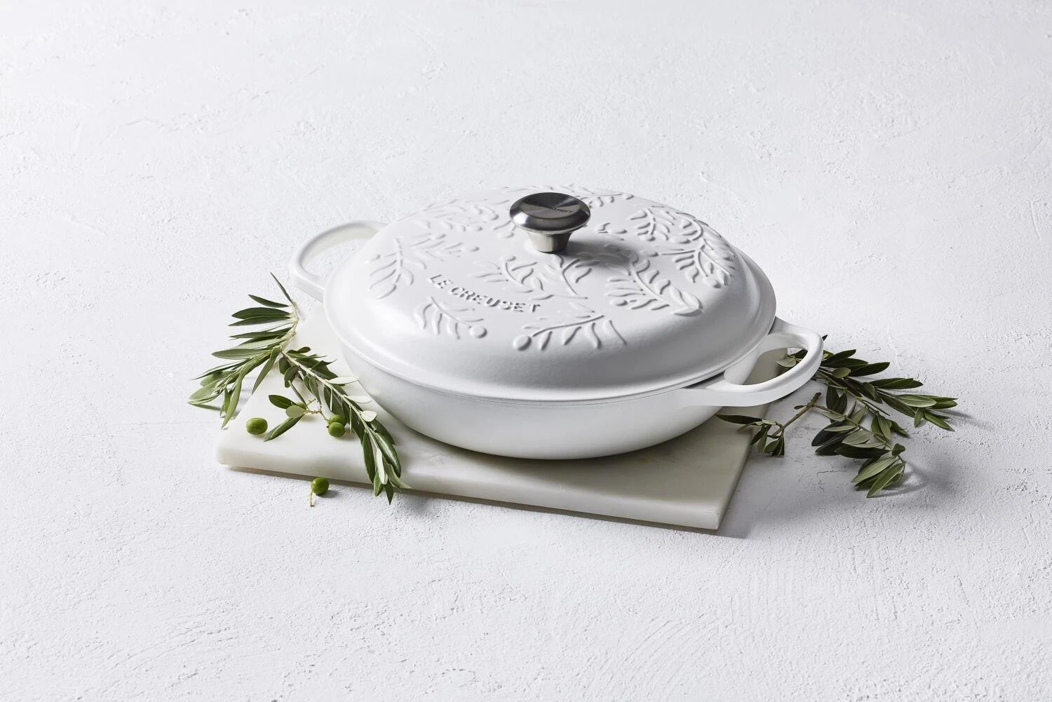 Die exklusive Kollektion Olive Branch von Le Creuset veredelt den Topf mit feinen Verzierungen und einem warmen hellen Farbton!