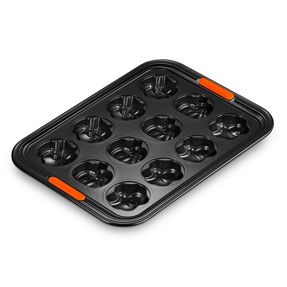 Zaubern Sie schaurig-schöne Leckerbissen mit dieser 12er-Halloweenform. Die einzelnen Backvertiefungen haben die Gestalt eines Kürbisses, eines Gespenstes und einer Fledermaus – perfekt zum Backen von gruseligem Halloween-Gebäck für Familie und Freunde. Das Backblech ist für Temperaturen bis 240 °C geeignet. Es ist außerdem mit der robusten Antihaftbeschichtung von Le Creuset versehen, die dafür sorgt, dass sich Gebäck leicht aus der Form lösen lässt.