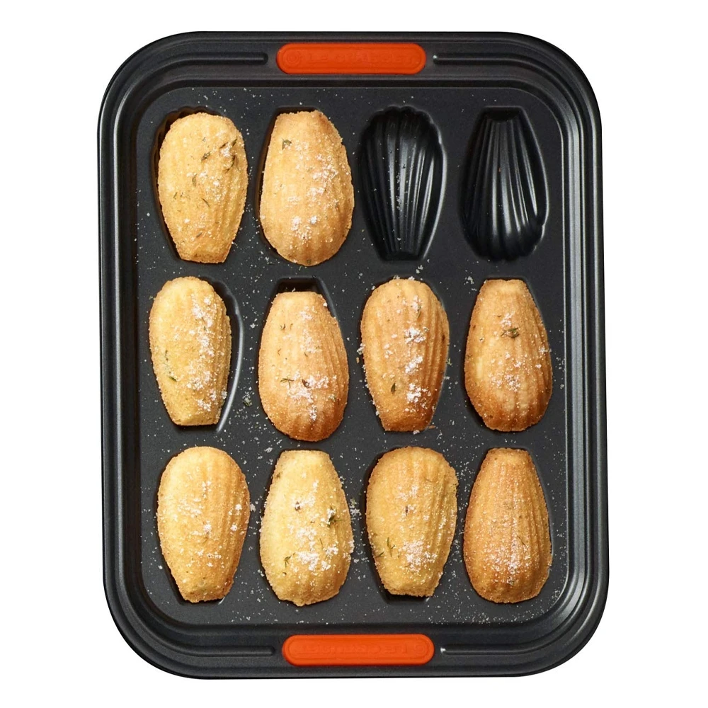 Die 12er-Madeleineform sorgt für das authentisch französische Backerlebnis zu Hause. Das Backblech ist für Temperaturen bis 240 °C geeignet. Es ist außerdem mit der robusten Antihaftbeschichtung von Le Creuset versehen, die dafür sorgt, dass sich Gebäck leicht aus der Form lösen lässt.