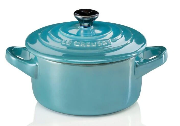 Le Creuset Mini Cocotte in karibik Metallic. Vielfältig einsetzbares Serviertöpfchen in glänzender Farbe.