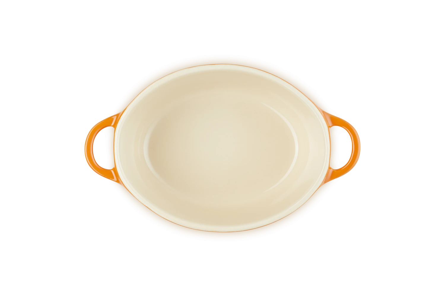 Le Creuset Mini Cocotte oval in ofenrot. Ovales Serviertöpfchen für den vielfältigen Einsatz.