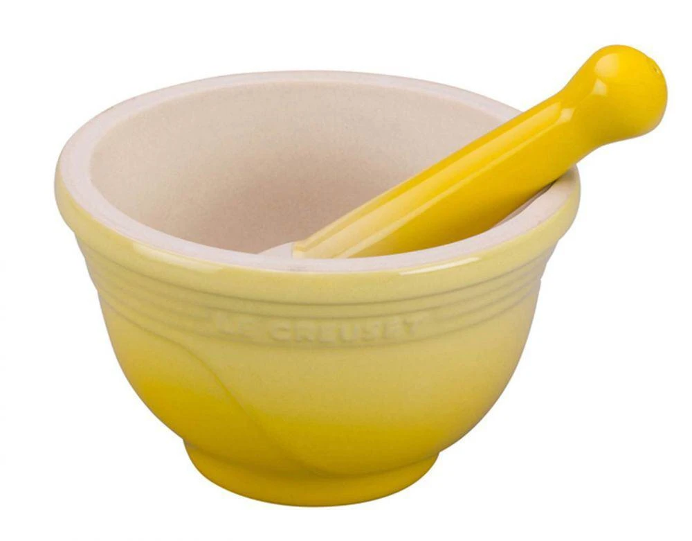 Le Creuset Mörser in citrus. Ein unverzichtbarer Helfer für das Zermahlen und Zerstossen von Gewürzen und Kräutern.
