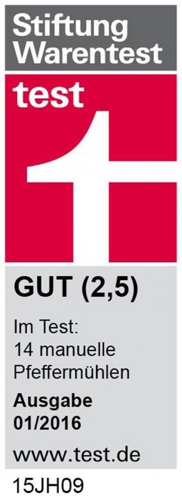 - Stiftung Warentest Gesamtnote 2,5 “Gut” 01/2016