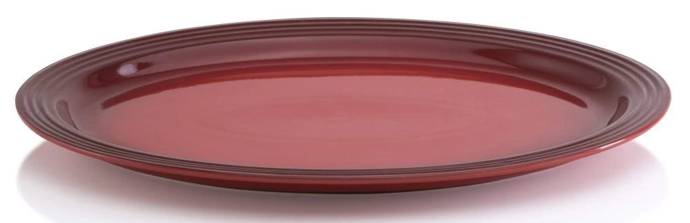 Le Creuset Servierplatte oval in kirschrot. Mit 46 cm Länge. Ideal zum stilvollen Servieren von Vorspeisen, Hauptgerichten, Obst oder Gemüse, Käseplatten, Baguette und vielem mehr. Auch als Dekorationsplatte nutzbar.