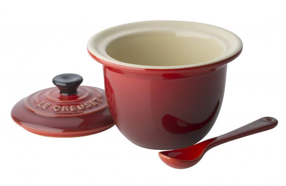 Le Creuset mit Löffel und Deckel eignet sich zum Anrichten und Servieren von kleinen Speisen. Tapas kommen super in dem kleinen Topf zur Geltung. Zudem lässt sich der Topf auch speziell für flüssige Gerichte verwenden. Ebenso wird das Portionieren durch den dazugehörigen Löffel leicht gemacht. Der Deckel dient zum Schutz und hält warme Speisen länger warm.