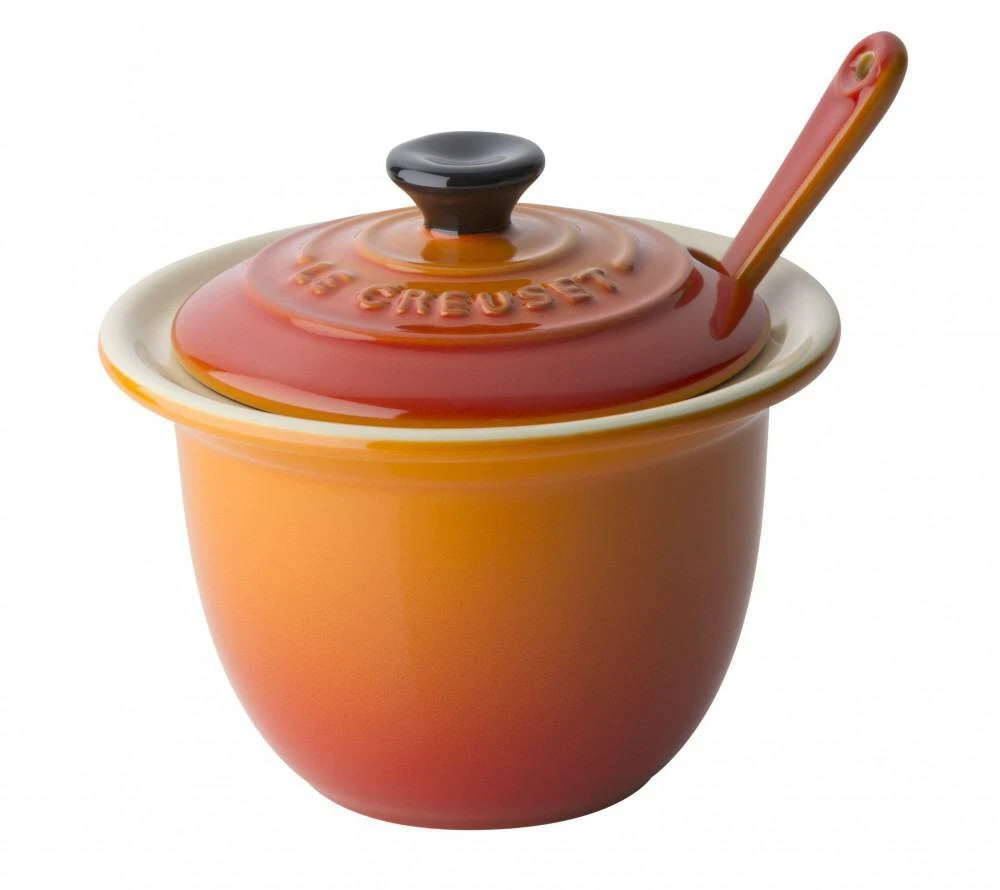 Le Creuset mit Löffel und Deckel eignet sich zum Anrichten und Servieren von kleinen Speisen. Tapas kommen super in dem kleinen Topf zur Geltung. Zudem lässt sich der Topf auch speziell für flüssige Gerichte verwenden. Ebenso wird das Portionieren durch den dazugehörigen Löffel leicht gemacht. Der Deckel dient zum Schutz und hält warme Speisen länger warm.