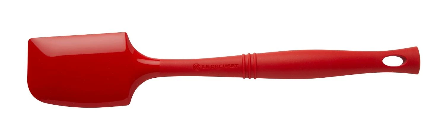 Le Creuset Silikonkochkelle in kirschrot. Hitzebeständige Kochkelle aus Silikon mit Kunststoffkern zum Kochen und Backen.