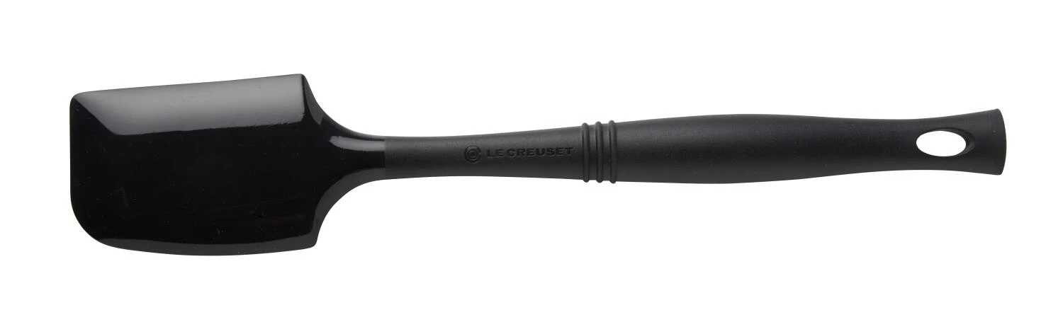 Le Creuset Silikonkochkelle in schwarz. Hitzebeständige Kochkelle aus Silikon mit Kunststoffkern zum Kochen und Backen.
