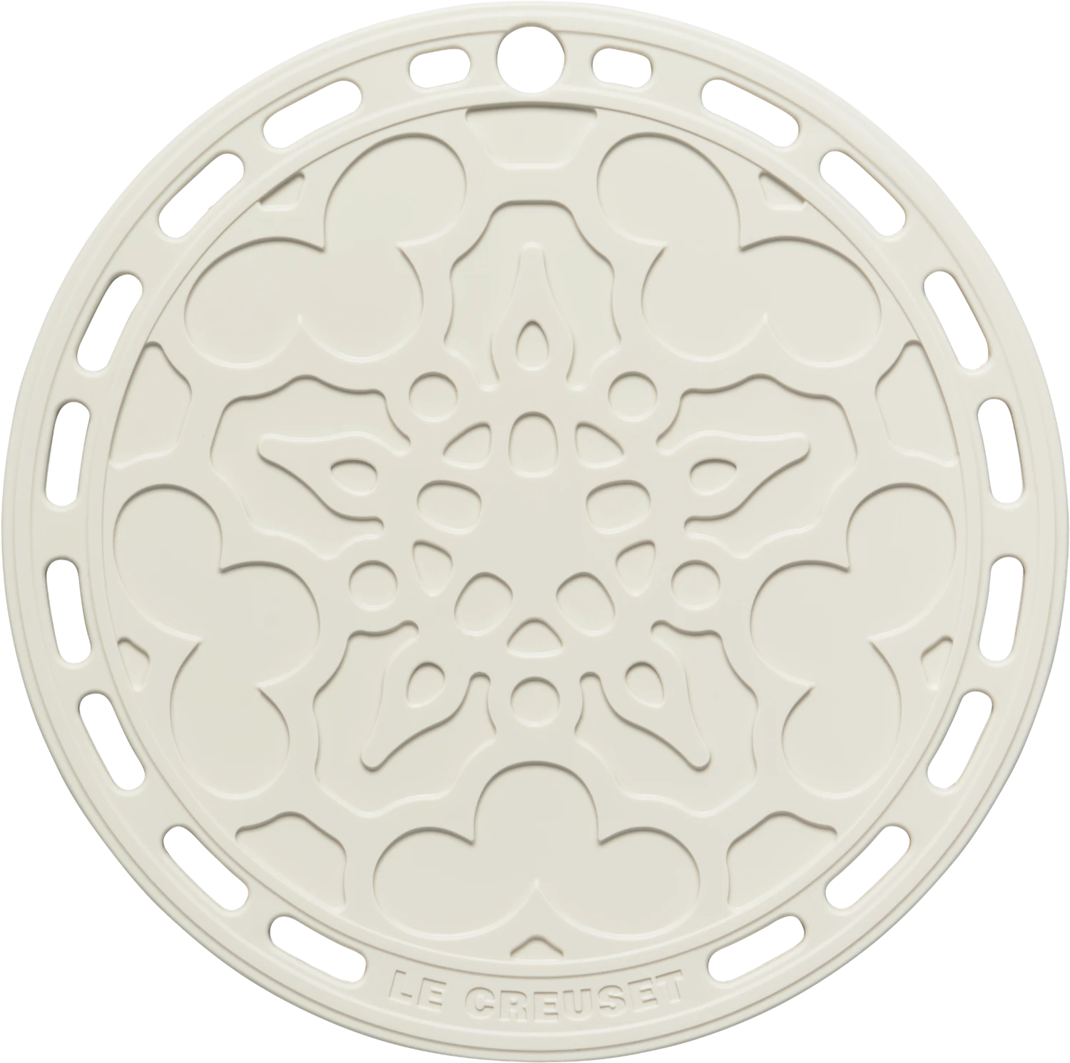 Le Creuset Silikonuntersetzer Tradition in meringue. Praktischer Küchenhelfer aus Silikon und verstärktem Nylon, bis zu 250 °C hitzebeständig.