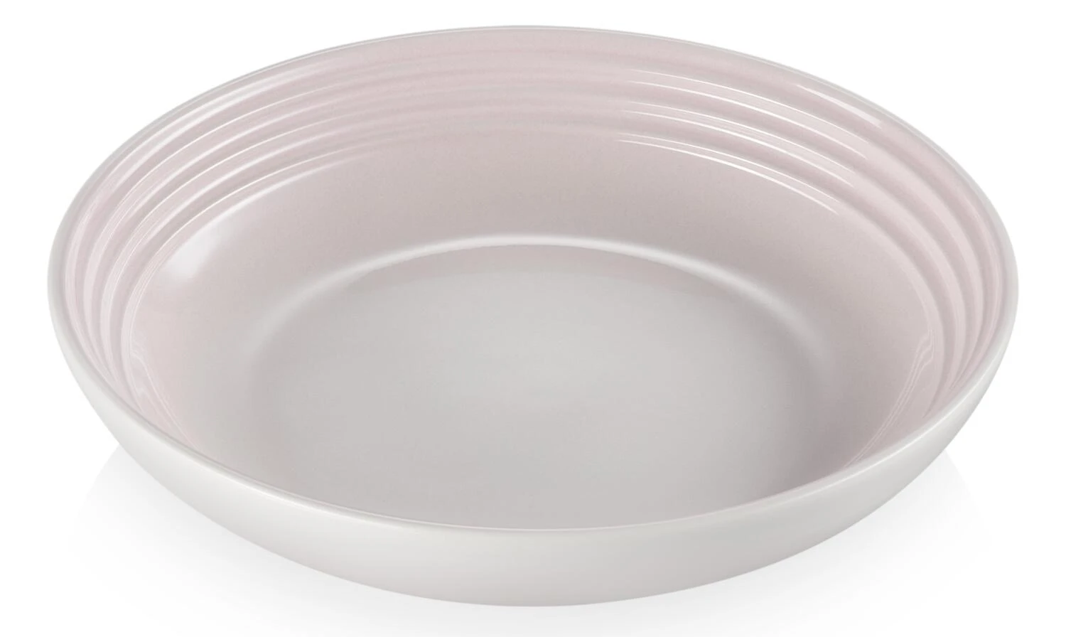 Le Creuset Suppenteller in shell pink. Der Teller eignet sich sowohl zum Servieren von Suppen und Eintöpfen als auch für köstliche Pastagerichte.