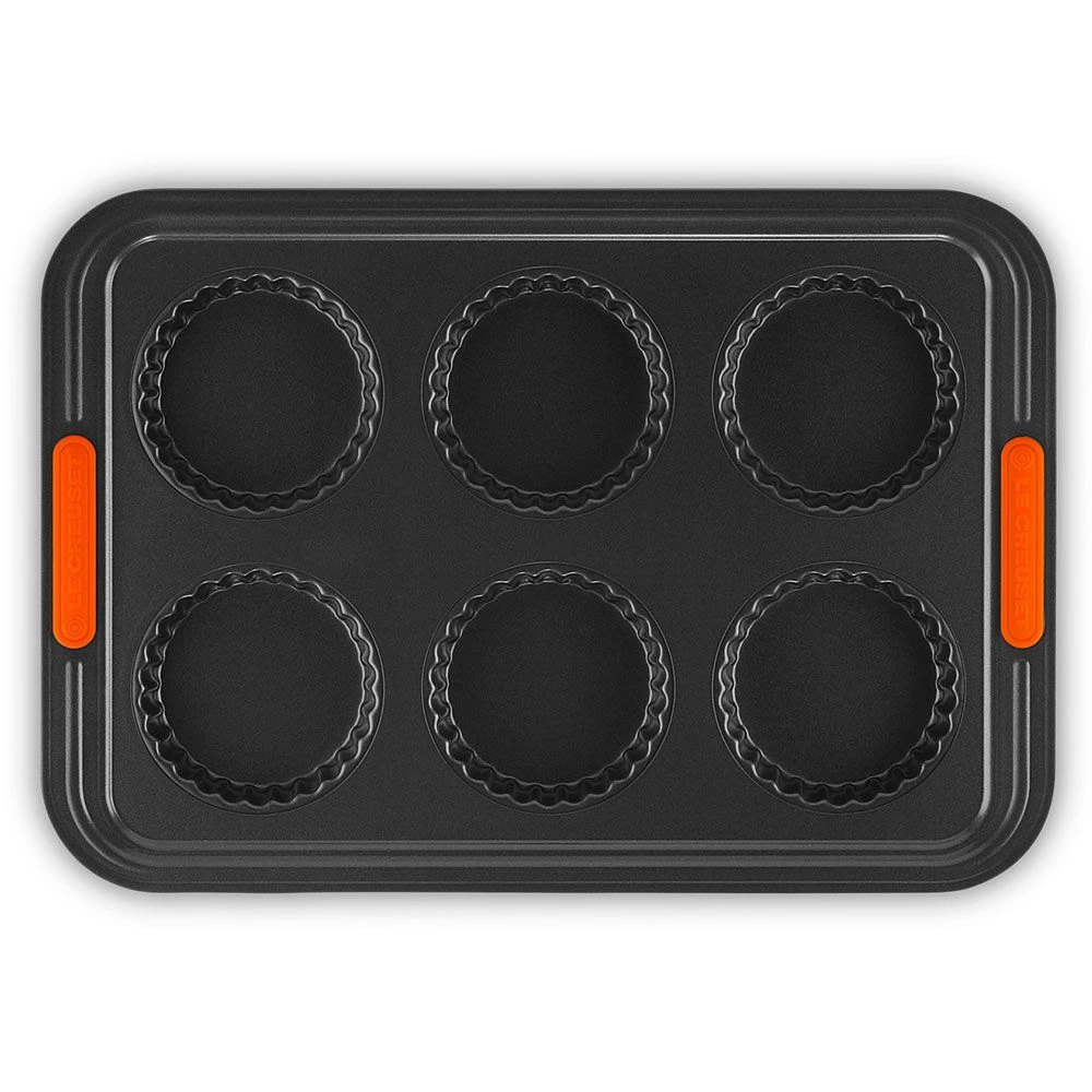 Backen Sie elegante Tartes in dieser fachmännisch gefertigten 6er-Tarteform. An der glatten Antihaftoberfläche klebt nichts fest. Wenn Ihre Kunstwerke fertig sind, lassen sie sich ganz leicht lösen. Die Form verteilt die Hitze gleichmäßig, sodass Ihr Gebäck immer gelingt.